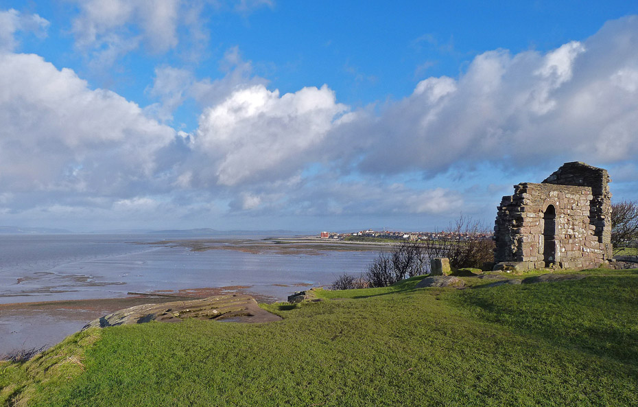 The wall ahead marks the once boundary between the Barrows and Heysham Head.