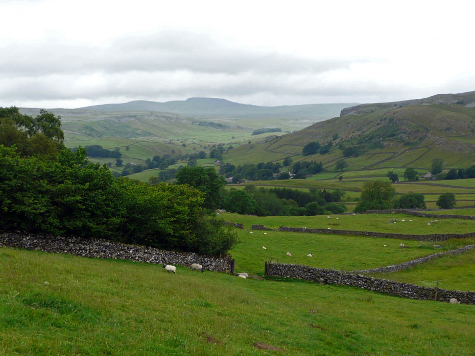 Ingleborough from the stile that they took down alongside Wharfe wood.