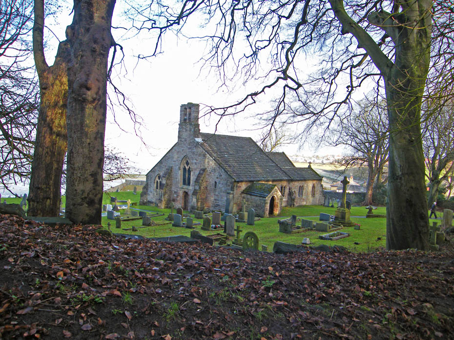 St Patrick's Chapel and the Stone Graves overlooking Morecambe Bay.