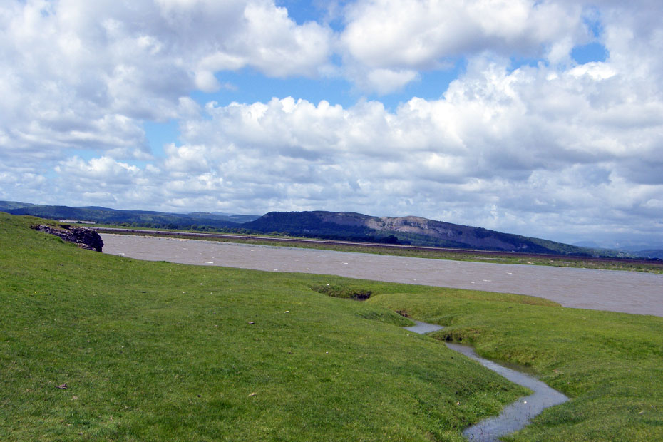 This was about as far as we went before turning around. The path ahead is a bit uneven and not for my knees today. We are looking down the Kent estuary to Sandside.