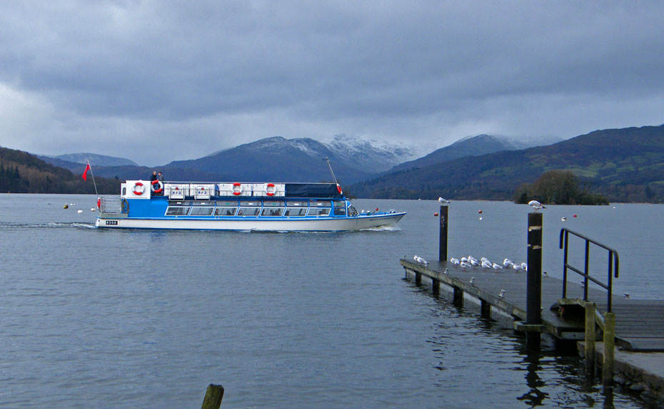 With the weatherman promising a brighter afternoon we delayed a visit to Lakeland (Plastics) of Windermere until lunchtime. Edith was looking for a present for her brother but unfortunately they did not have what she wanted. This cheered me up no end as the price tags in there made me dizzy and it also gave us time to visit the waterfront at Bowness to see how things were after the floods. After the walk we had a look in the main shopping centre and we did find what we came for.