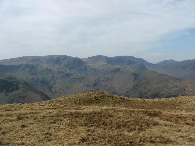 From Caudale Moor looking over the Gray Crag ridge to the High Street and the pointed peak of Kidsty Pike