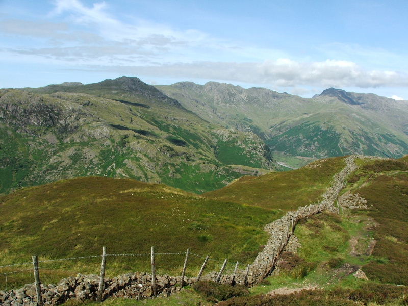 Cold Pike, Pike O' Blisco, Crinkle Crags and Bowfell ahead