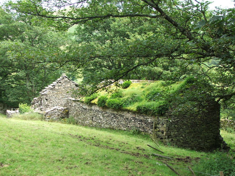 I had decided not to drop right down into the valley bottom but to follow the intake wall around towards Sandwick. On our way we passed this old farm building