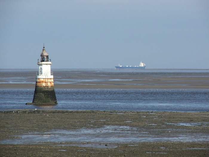The lighthouse again, this time with a container ship bound for Ireland from Heysham in the background