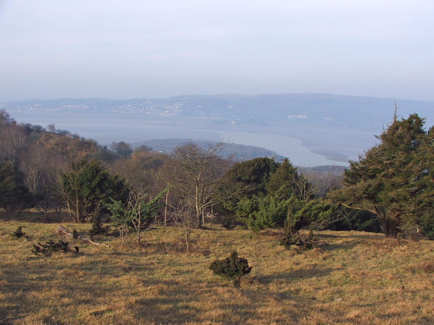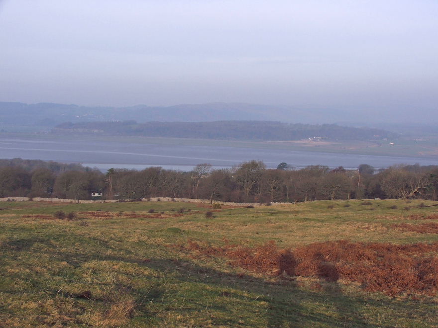Looking to the wooded Heathwaite with the faint outline of Humphrey Head behind