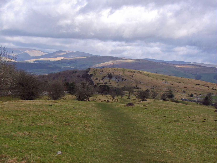 The way ahead to the top of Cunswick Fell. Although the same ridge, the Cunswick side of the Underbarrow Road is more grassy than the Scout Scar side.