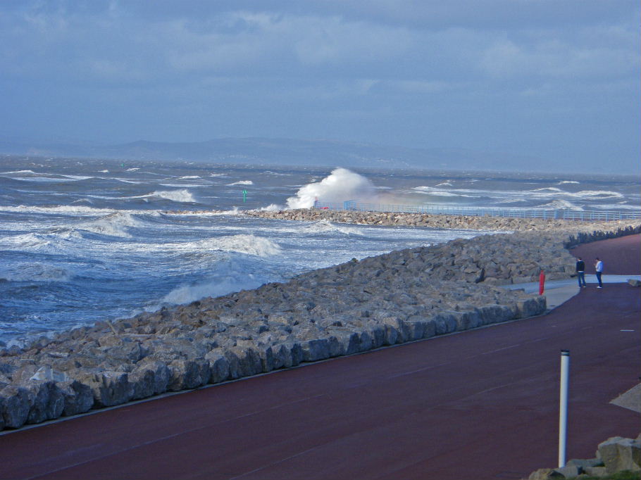 I was very impressed with the new sea defences along this section of promenade. The sloping limestone rocks absorb the power of the waves well. With conditions like these this section would have normally have been flooded.