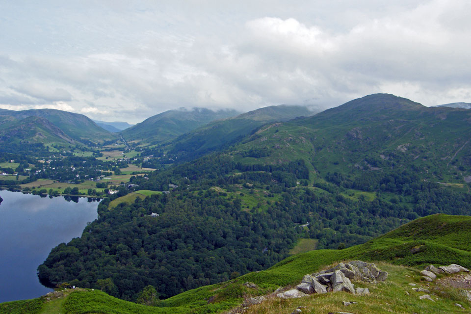 We are now at the viewpoint for Loughrigg Tarn which can be seen at the bottom. The cloud as cleared Lingmoor but as only just cleared the "v" of the Wrynose Pass to the left