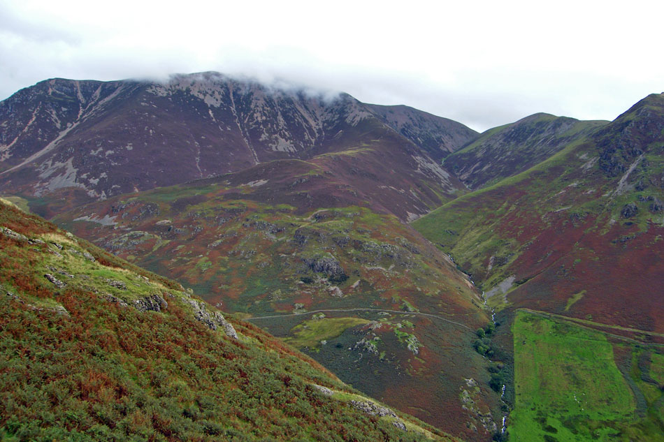 A look up the Buttermere valley and now Kirk Fell and Great Gable can be seen over Haystacks.