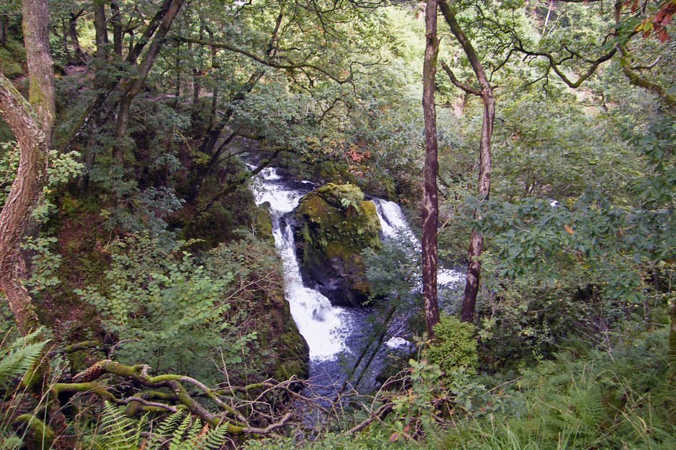 It's not a particularly high waterfall, about 15 feet or so but the noise as all the water from the Langdale valleys is squeezed through a 6 foot gap at the top is quite impressive. There is a track down to the Force from the main path but please be carefull if descending to the second bridge....it can be very slippy.