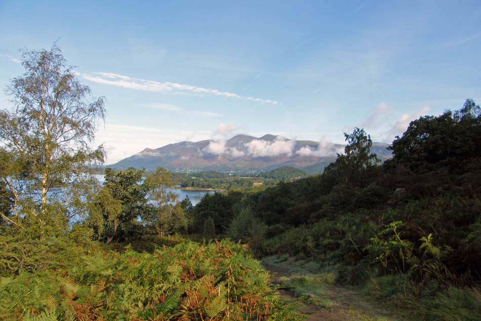 Beautiful views across Derwentwater to the North Western Fells of Barrow, Outerside, Catbells and Causey Pike with Grisedale Pike in the far distance.