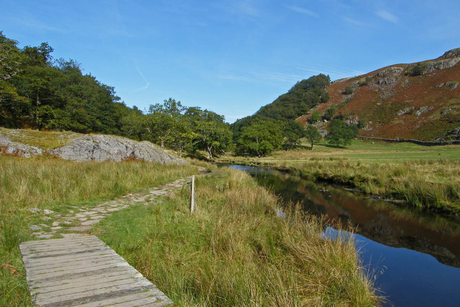 This stretch of path leading to Watendlath is a real pleasure to walk particularly on a day such as this. Reecastle Crag is relected in the beck.