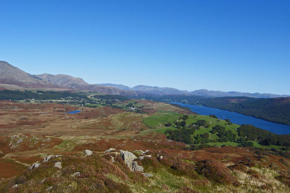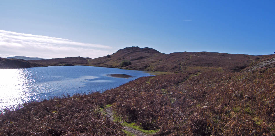 And looking the other way down to Beacon Tarn with Wool Knott at the far end.