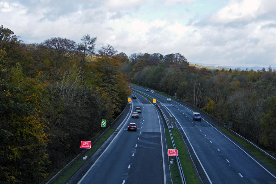 Leaving the park we crossed the A590. A half-mile further along the road was closed off with diversions in force due to flooding.