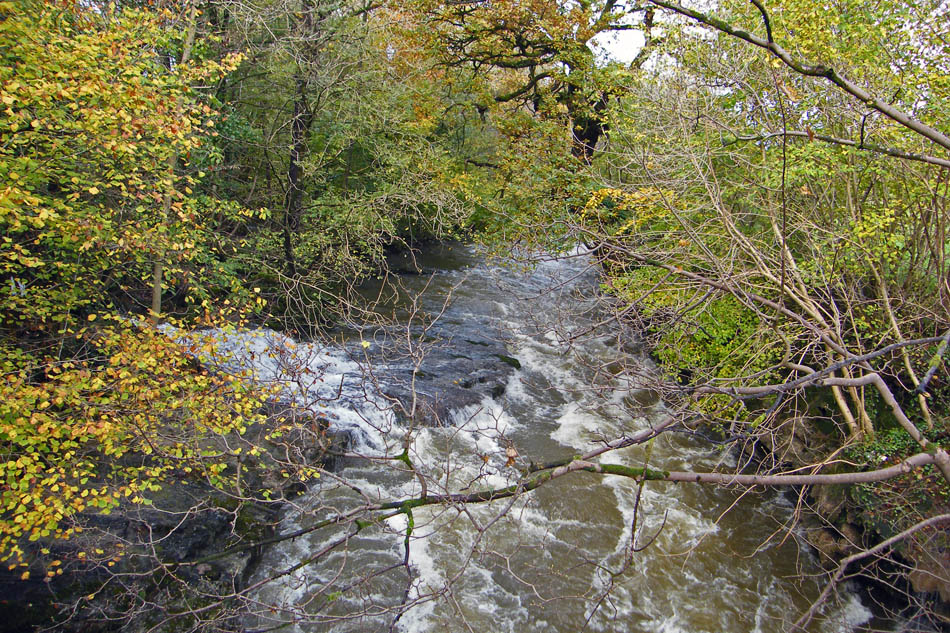 The falls at Force Bridge. There was a lot of water coming down the river almost covering the small fall.