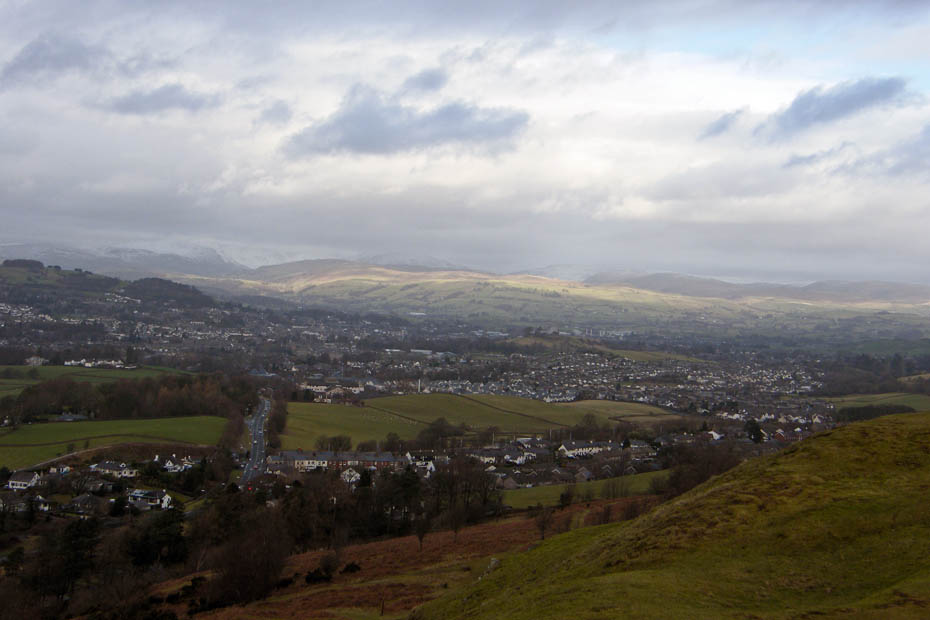 And over Oxenholme (below) and Kendal to Potter Fell with the snowy Kentmere and Shap fells behind.