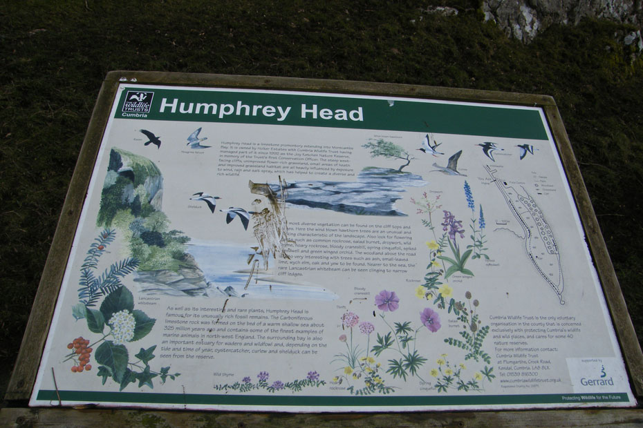 We had set off merely for a drive out to the Cartmel peninsula but as we passed through Allithwaite on the way to Flookburgh we decided to drive down to Humphrey Head for a short walk. We left the car on the roadside near the Education Centre and walked along the ridge to the Trig point. From there we carried on down to the foreshore with the intention of returning that way. However after recent high tides the foreshore was very muddy and as I was only wearing trainers we decided to return back over the Head. A.Wainwright included Humphrey Head in his "Outlying Fells of Lakeland". He says of it "Not by any exercise of the imagination can Humphrey Head be classed as an outlying fell of Lakeland. Outlying it certainly is : a limestone promotory thrusting from the Kent Estuary coast and almost surrounded by mudflats at low tide and awash at high. A fell it is certainly not, being a meagre 172 feet above the sea and, away from its dangerous cliffs, so gentle in gradient and surface texture that the ascent is a barefoot stroll. Yet the isolation, far-ranging views and seascapes, bird life (of national repute), rocky reefs and interesting approach combine to make the place unique in the district, giving better reason for its inclusion than its omission. Fellwalkers need a change of scene. Here is one on Humphrey Head"