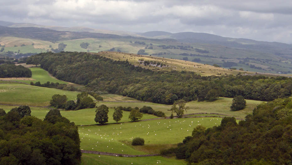 Looking across the Lyth Valley to Whitbarrow with Arnside Knott in the distance.