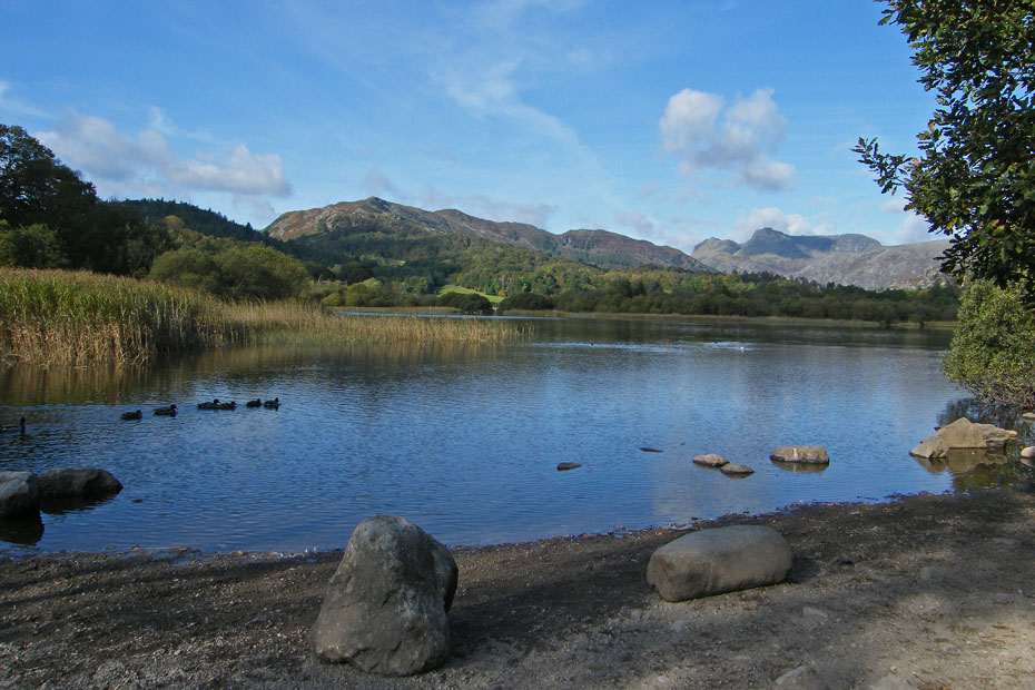 We were soon at Elter Water itself with magnificent views to Lingmoor and the Langdale Pikes.
