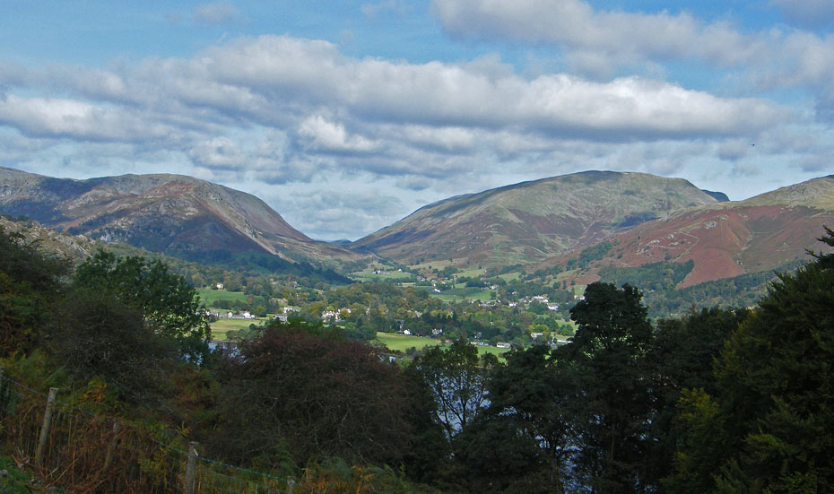 A look back to the village with Spedding Crag behind as we set off for Skelwith Bridge.