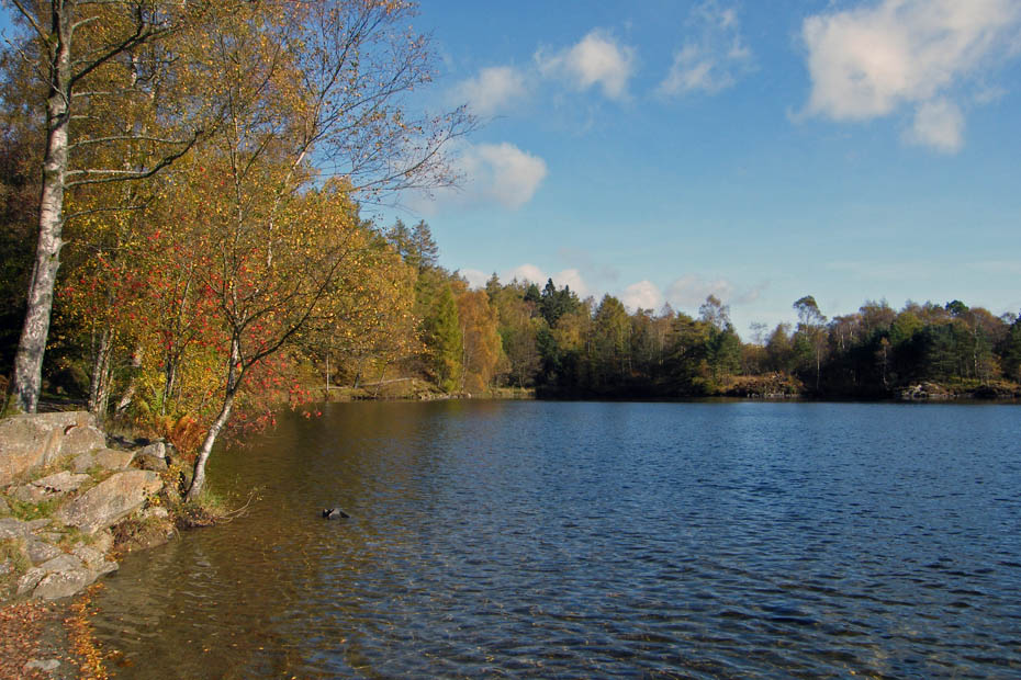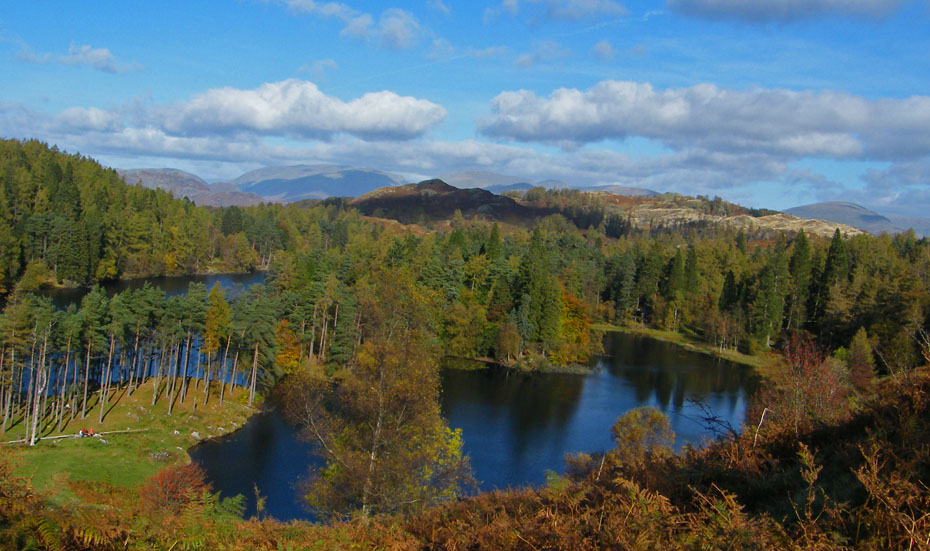 What a brilliant day to visit The Tarns. Blue skies and cotton wool clouds made this short walk a delight every step of the way. If I have to complain about anything it was that the breze was just strong enough to spoil any decent reflections. Even my breathing seemed to be better than on the last two walks so I am hoping that it was due to a possible reaction to my annual Flu jab and also a Pneumo jab. We were a little late in setting off due to the A591 being closed between Windermere and Ambleside. In the end we decided to go via Coniston.
