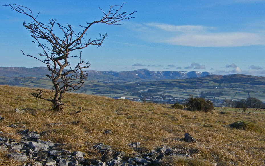 A late start today due to watching Andy Murray in the Australian Open. After the first two sets I'm afraid I lost interest and we set off for Arnside & Silverdale. As we drove along the promenade it seemed that the area was under a dull grey cloud yet under it we could see the Lakeland Fells. A change of plan then took us to the Kendal Scars where no map or compass or GPS is needed. To get lost along these ridges would be the pinnacle of foolishness. Stray from the ridges....that is another matter.