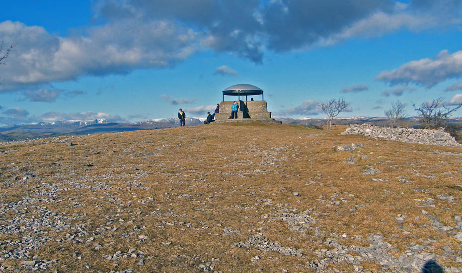 A short walk took us to the Trig Point on Scout Scar with the Howgills behind.
