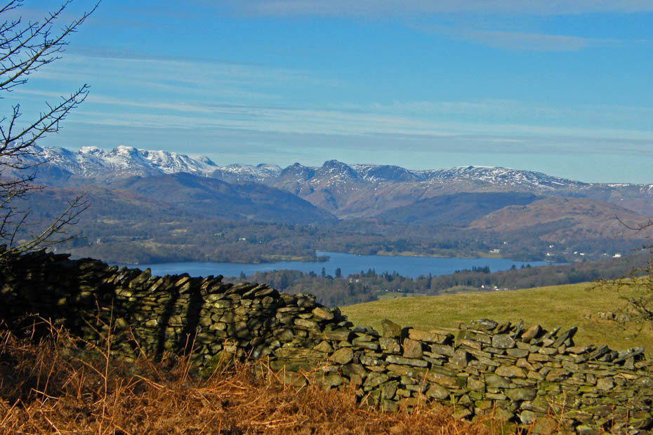 "It was a moment of magic, a revelation so unexpected that I stood transfixed, unable to believe my eyes. I saw mountain ranges, one after another, the nearer starkly etched, those beyond fading into the blue distance. Rich woodlands, emerald pastures and the shimmering waters of the lake below added to a pageant of loveliness, a glorious panorama that held me enthralled." .....A Wainwright....Memoirs of a Fellwanderer.