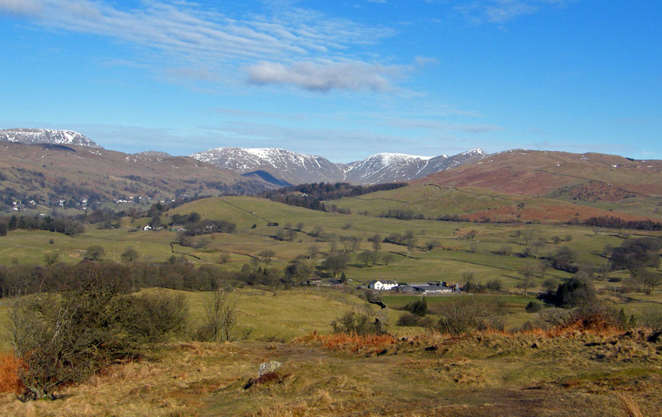 Red Screes (l) and Caudale Moor (r) with Applethwaite Common in the right foreground.