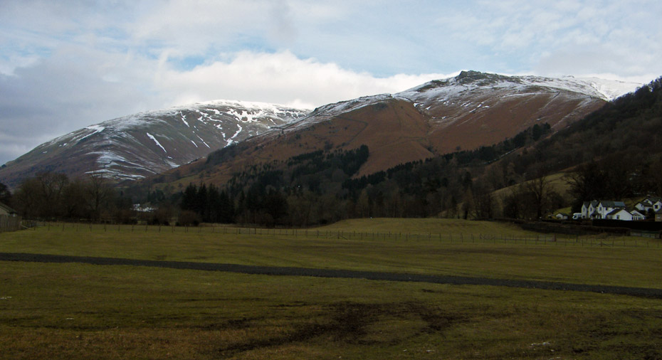 Helm Grag and Steel Fell as we walk into Grasmere village.