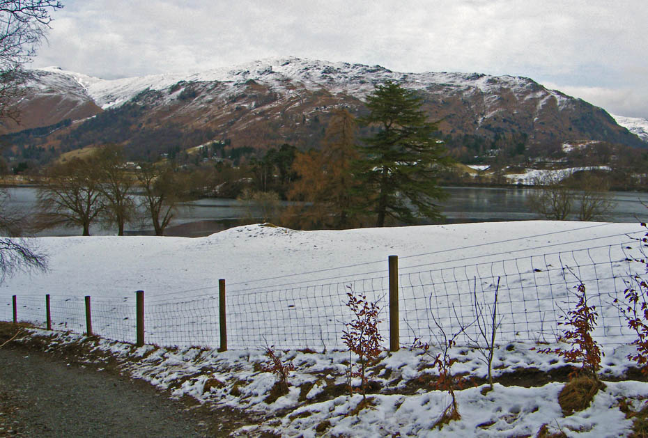 Looks a little brighter to the north. An icy Grasmere with Helm Crag, Seat Sandal and Stone Arthur.