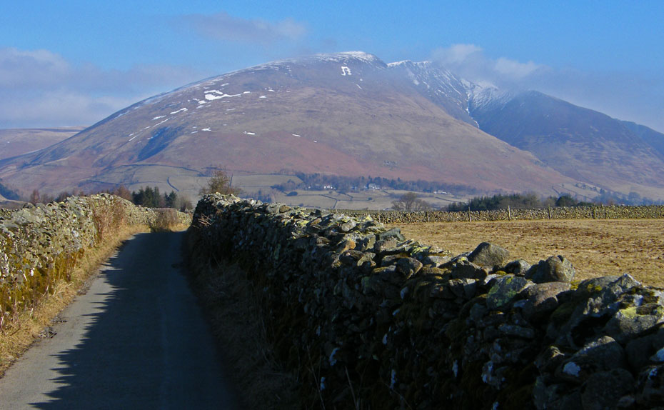 From the church our path would be past Low Rigg towards Tewet Tarn. Looking over to Threlkeld Knotts and the crags of Clough Head.