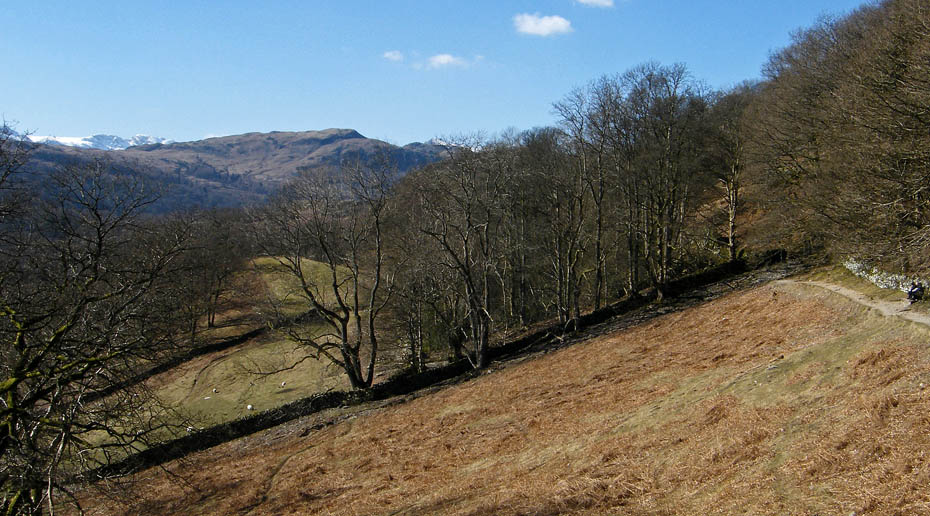 Walking along the Loughrigg Terrace with Silver How ahead.