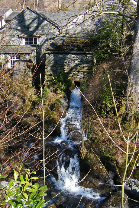 Most of the water coming down Rydal Beck was being diverted through the power plant (l). A wander down to the lower bridge for a picture of the lower falls and the grotto. (r)