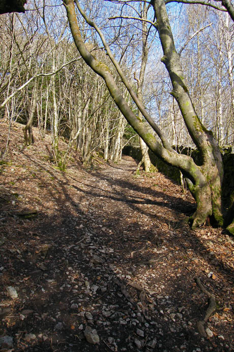 We parked on the Arnside - Silverdale road near Arnside Tower farm and made our way upwards through the woods.