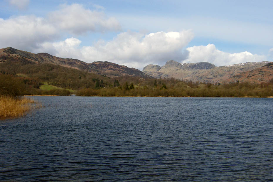 A first view of the Langdales as we approach the woods alongside Elter Water.