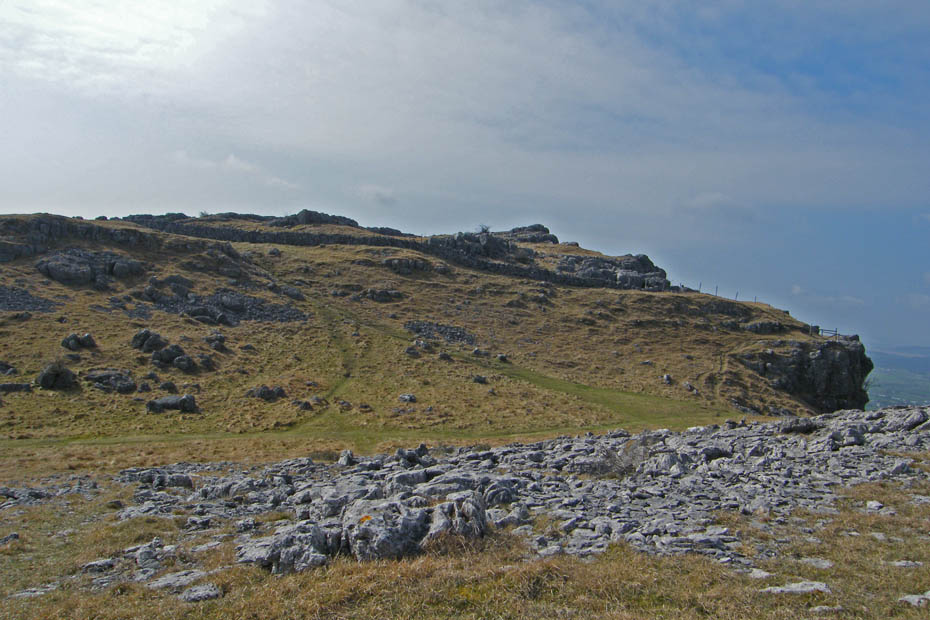 Looking up to Farleton Crag the highest point. I had come down from a stile on the far left of the picture.