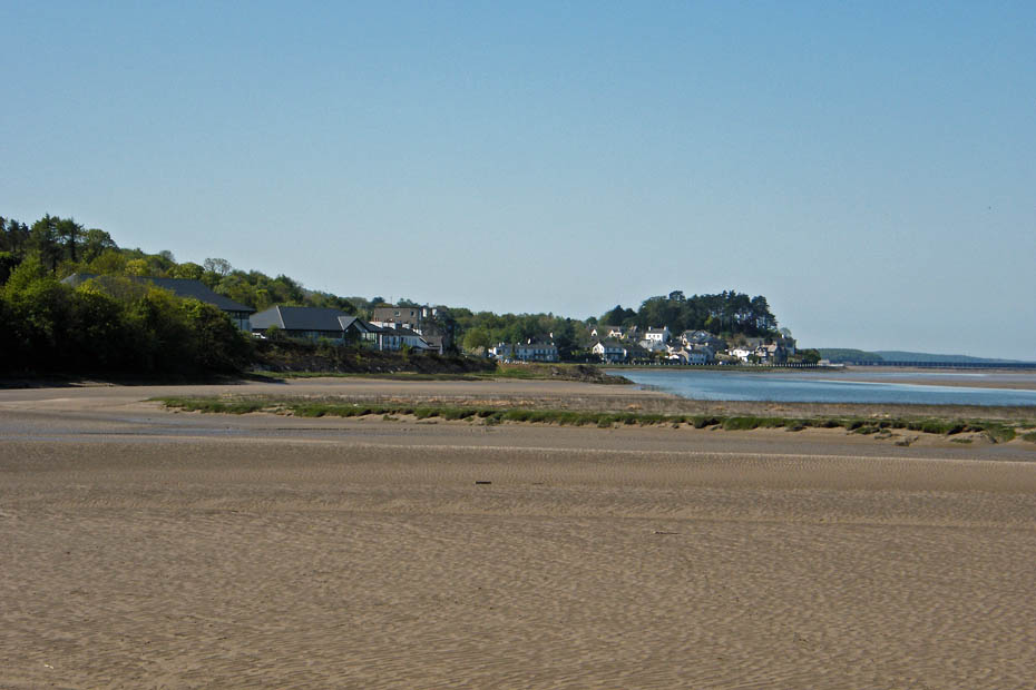 Looking south to Sandside. Our path now joins the old railway line for a short distance then we cross the road.....