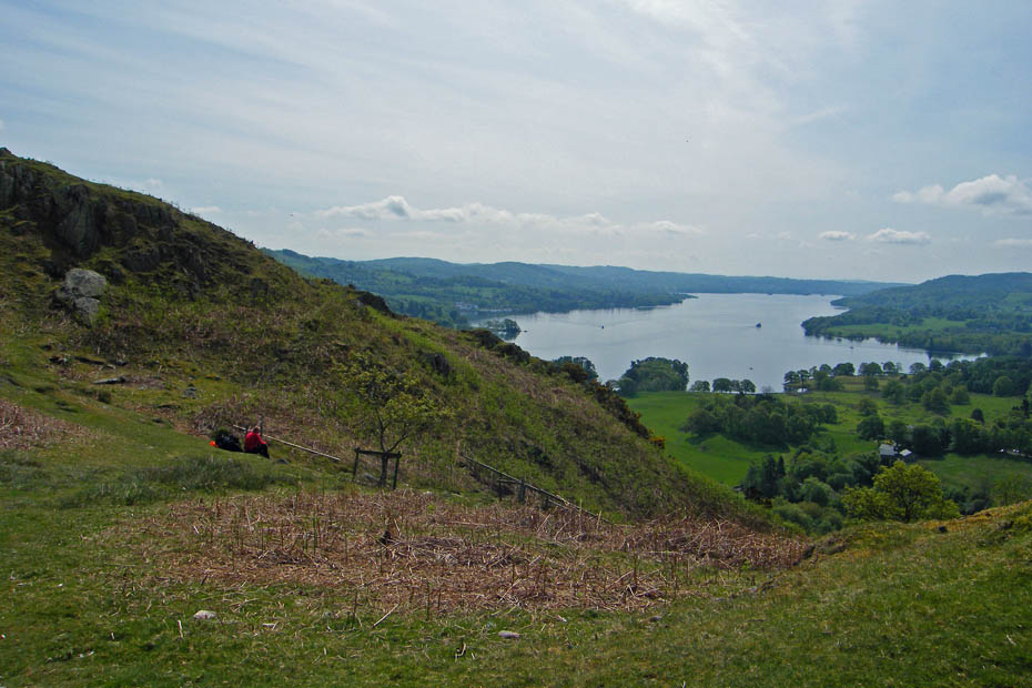 As we gained height Black Fell and Holme are seen with the cloudy Coniston range behind.