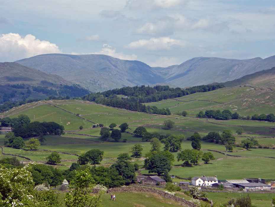 The Conistons tower over the Outlying Fell of Latterbarrow.