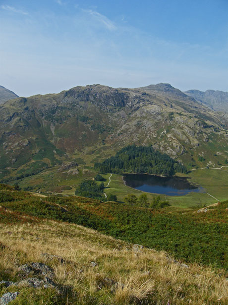 Looking over Blea Tarn towards Blake Rigg and Pike O'Blisco.