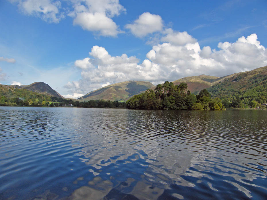 Helm Crag overlooks the village and water whilst a rowing boat moves from Faeryland makes it way across the water.