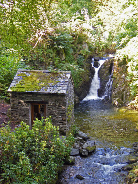 The lower falls of Rydal Beck (l) and the upper falls (r)