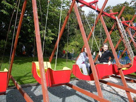 Renee & Sophie (l) and Lana & Sophie (r) on the swingboats