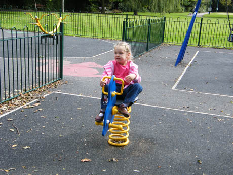 Renee having forsaken the swing boats is given an hand by Nicole.