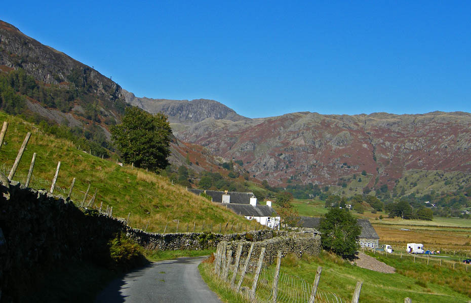 Looking up Langdale and the lane we will follow to the New Dungeon Ghyll.