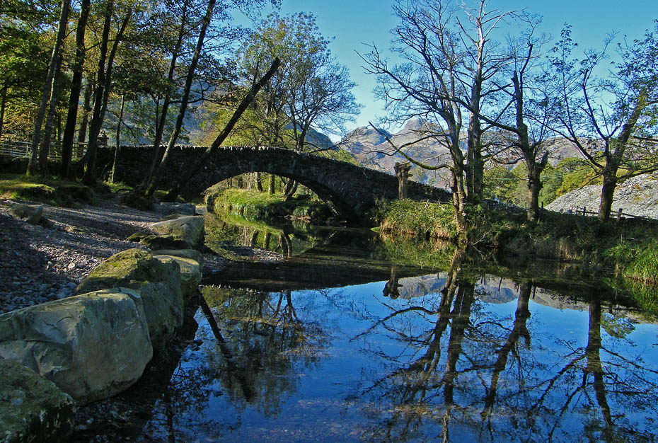 Elterwater Bridge. After leaving the rucsacs in the car and changing boots for trainers we walked down to Elter Water.