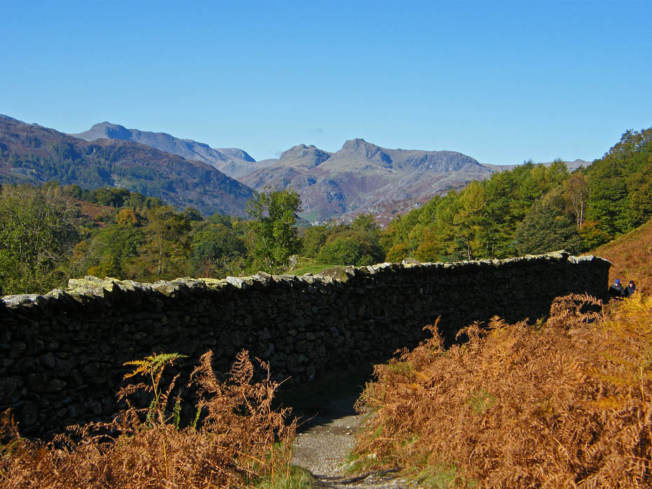 A section of old Lakeland slate "hedging" guides the road down. At the bottom we turned left to follow the quiet "back road" back to Rydal.