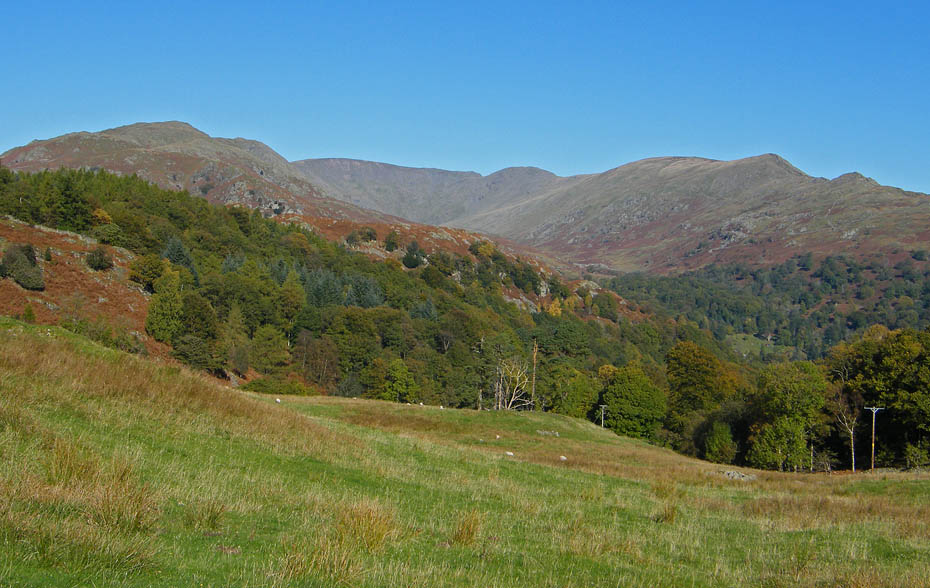 Looking over White Moss towards Heron Pike, Great Rigg and Seat Sandal.